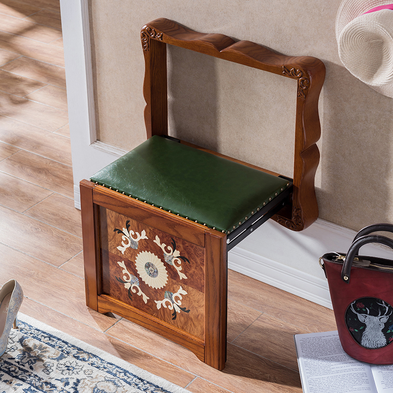 Solid wood shoe stool Household folding stool Door invisible wall-mounted shoe stool Into the door to save space can sit on the entrance stool