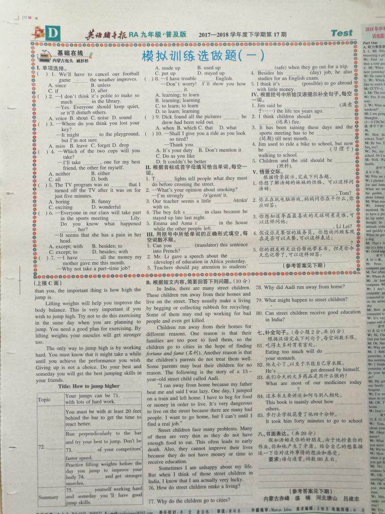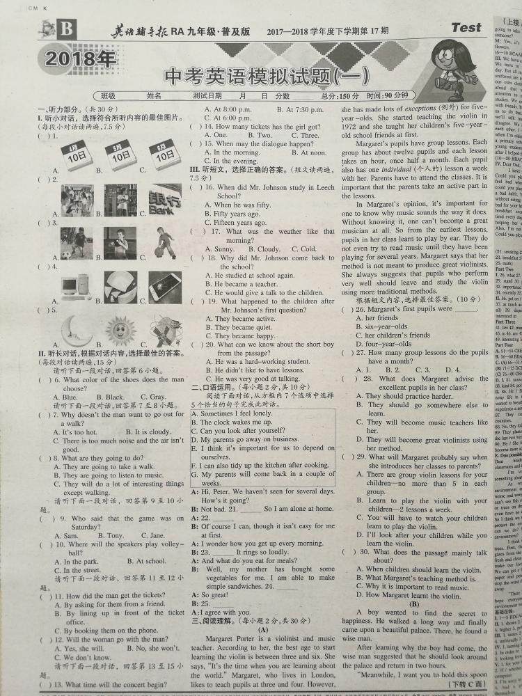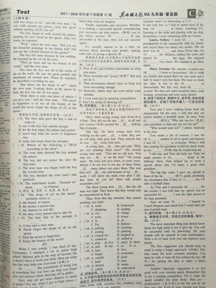English tutoring newspaper ninth-grade lower register of benevolent version junior high school junior high school in English paper in English paper