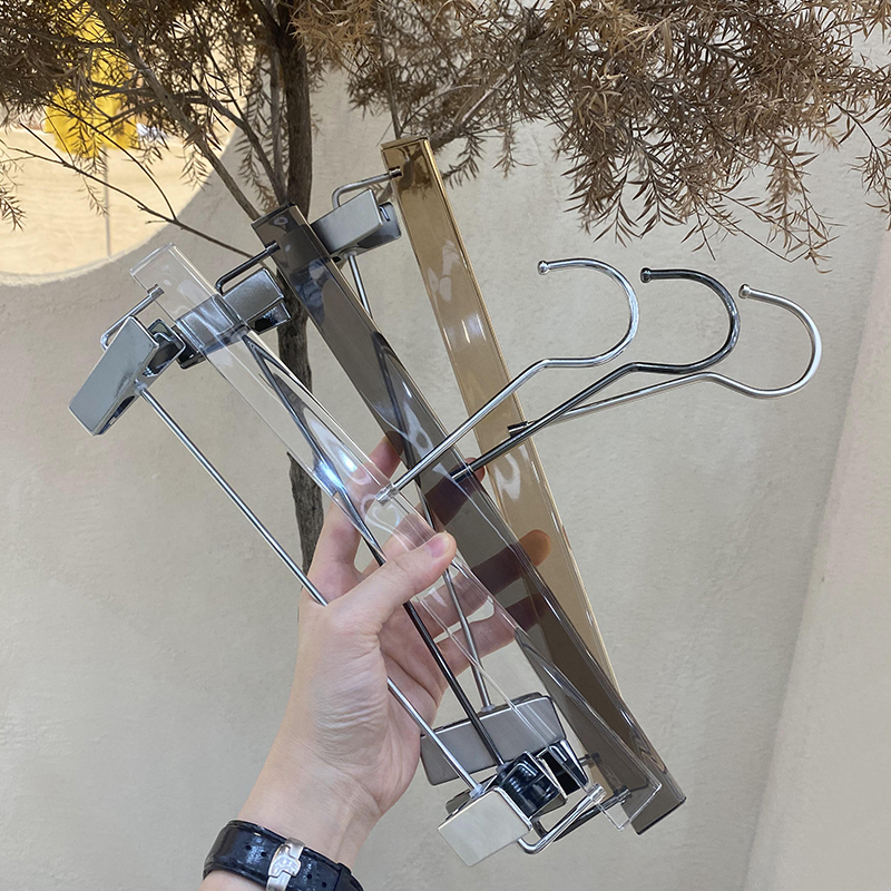 Hangers for clothing stores special acrylic transparent hangers for light luxury crystal clothes hang incognito non-slip pants clip pants rack customization