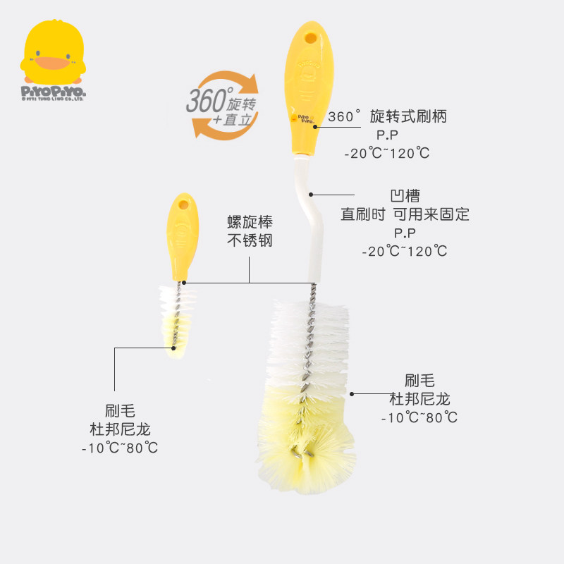 Yellow duckling bottle cleaning brush set Pacifier brush Soft bristle Glass bottle Plastic bottle cleaning brush