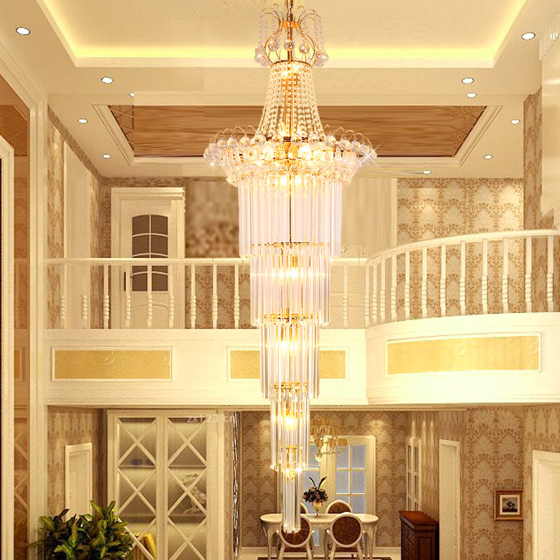 European-style double-entry staircase light building middle floor long chandelier living room crystal chandelier villa spiral staircase long chandelier
