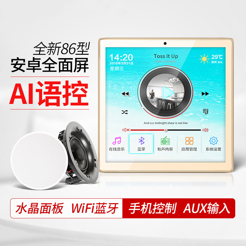 Type 86 voice voice control 4 inch screen background music WiFi Android host suction audio smart home system 86F