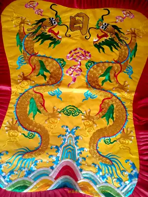 Banana fan Double Dragon Shuangfeng festive Buddha Temple embroidery Buddha statue God fan Sun Moon fan large 93cm high embroidery