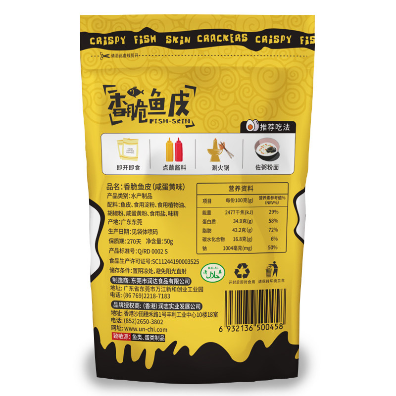 Moisturizing and crisp fish leather 50g egg yolk fish leather snacks ready-to-eat fish leather casual snacks Crisp Fish Peel Delicious