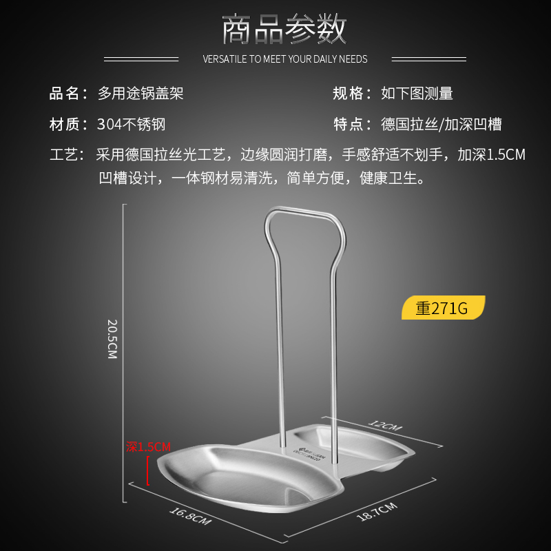 Germany 304 stainless steel punch-free kitchen home spoon storage rack put pot lid shelf pot lid rack sitting type