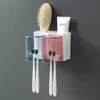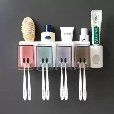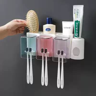 Multi-function bathroom creative storage toothbrush storage shelf Toothpaste dispenser Punch-free wall-suction washing cup holder