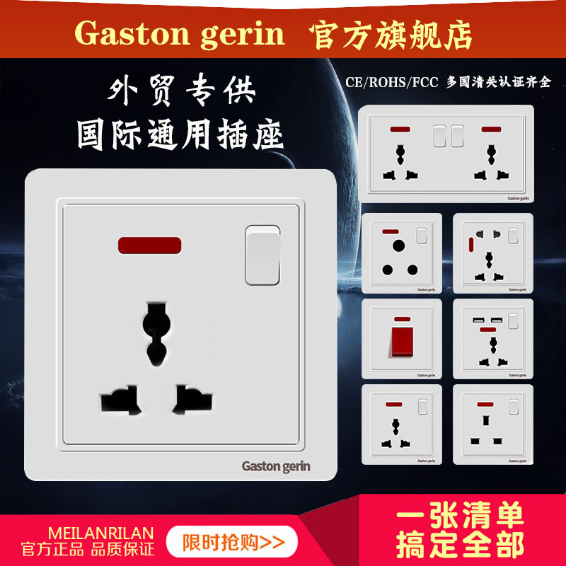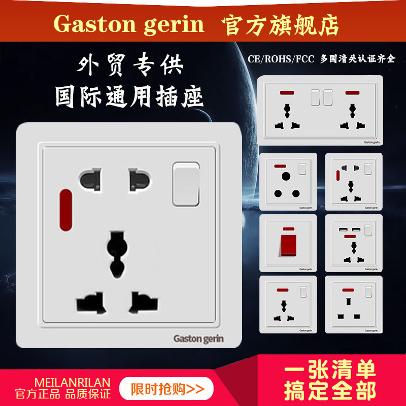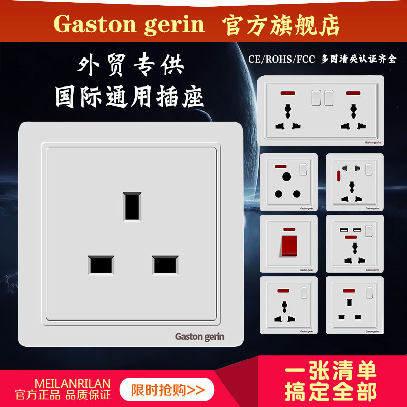 Versatile three-hole socket multifunction five-hole socket multifunction six-hole socket (champagne gold) multifunction six-hole socket misplaced multifunction six-hole socket Inform 13A-square three-hole socket open-style 13A square