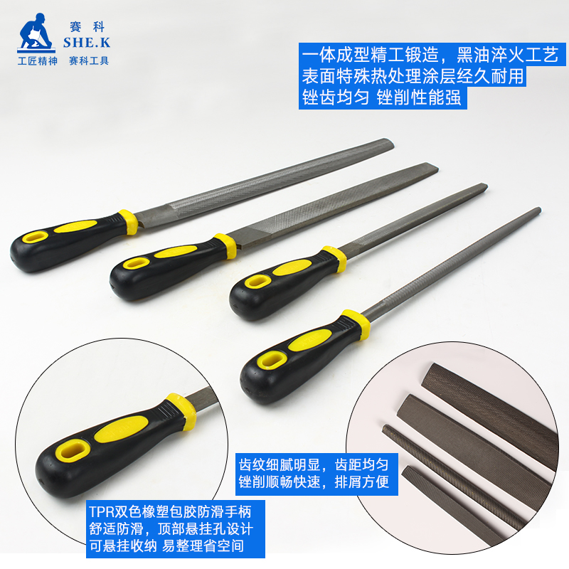 Seko filing knife steel filing 681012-inch flat-head flat file semi-circle filing triangular filing thick mid-tooth carpentry polishing tool filing