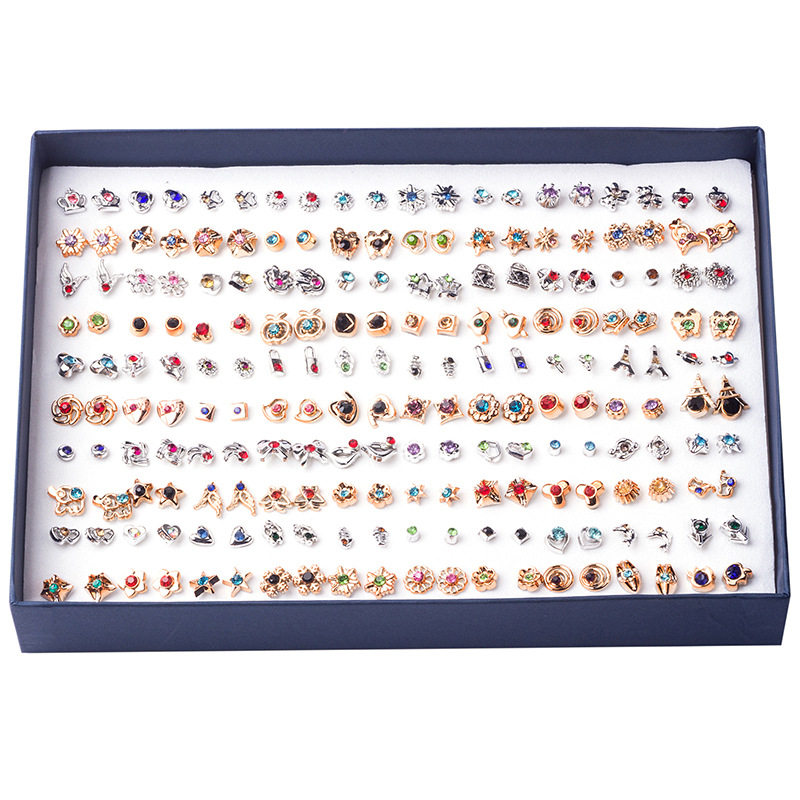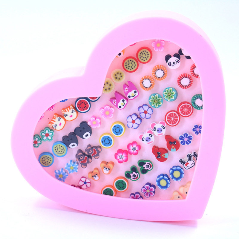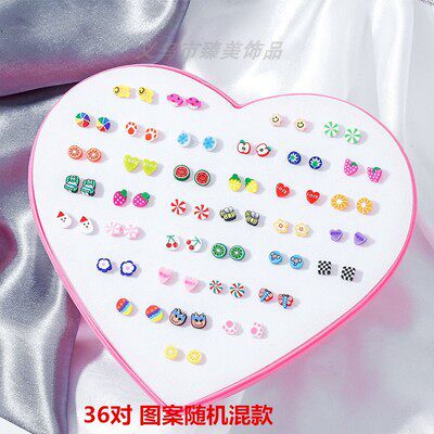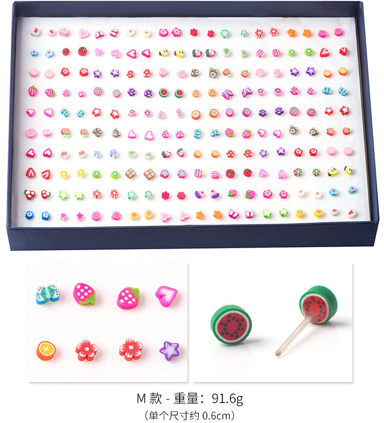 Children Cartoon Plastic 100 Pairs Boxes Ear Needles Soft Pottery Drop Oil Inlaid With Glue Needles Anti Allergy Cute Princess Earrings