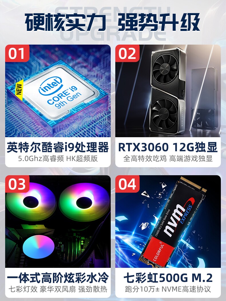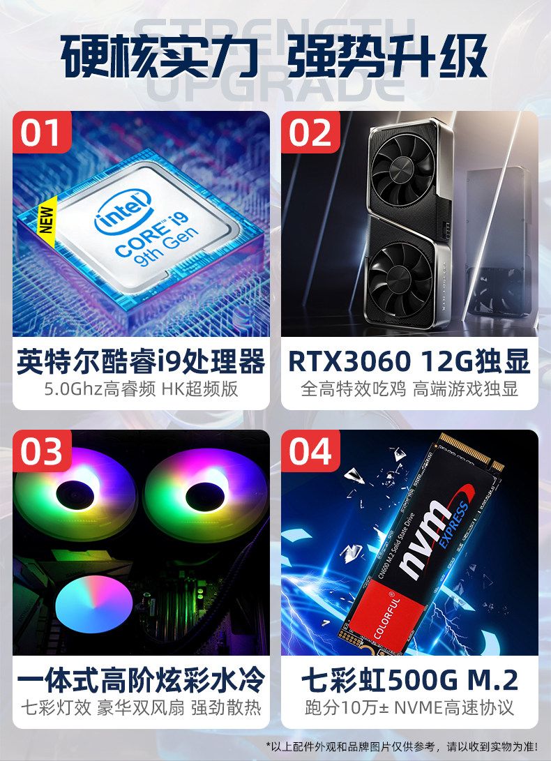 Cool Rui i9 8 1060 1060 2060 3060 3060 display card Eat Chicken Yonder no room game Electric Arena Live Water Cooling High Fit Desk Assembly Machine DIY Assembly Computer host complete set complete