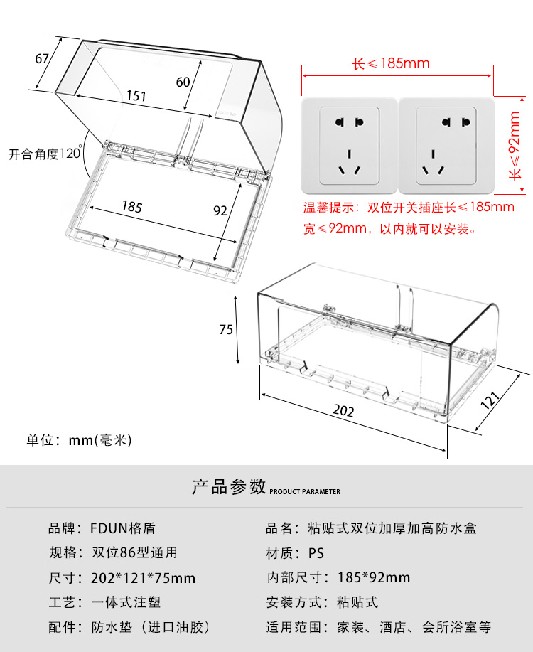 Type 86 MAKEUP ROOM TOILET WATER HEATER LEAKAGE PROTECTION SWITCH WATERPROOF CASE DOUBLE-POSITION DOUBLE SOCKET PLUS HIGH WATERPROOF HOOD