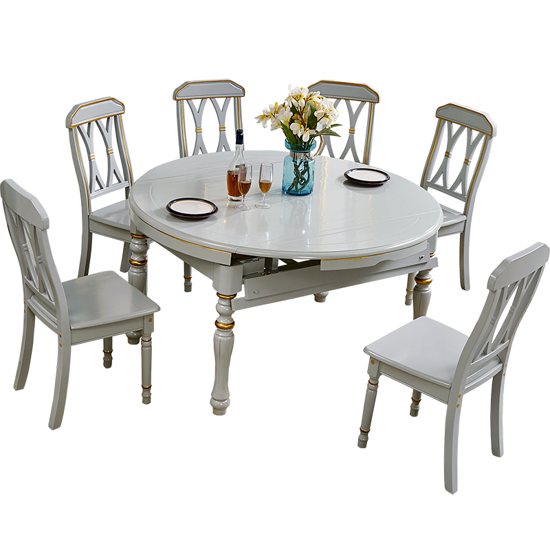 American solid wood dining table and chairs combined modern minimalist grey square-purpose folding table telescopic small family type round table-Taobao