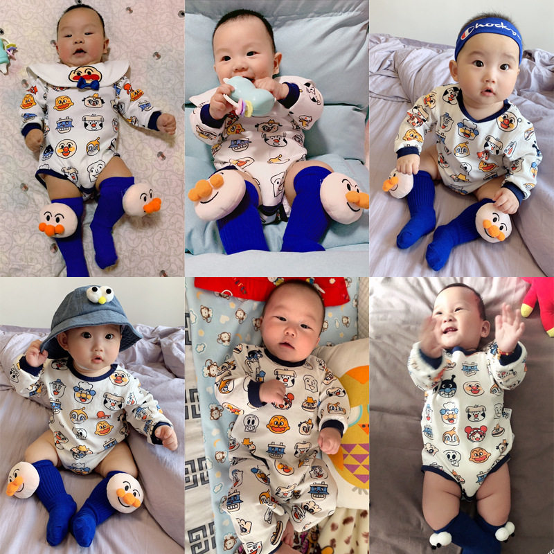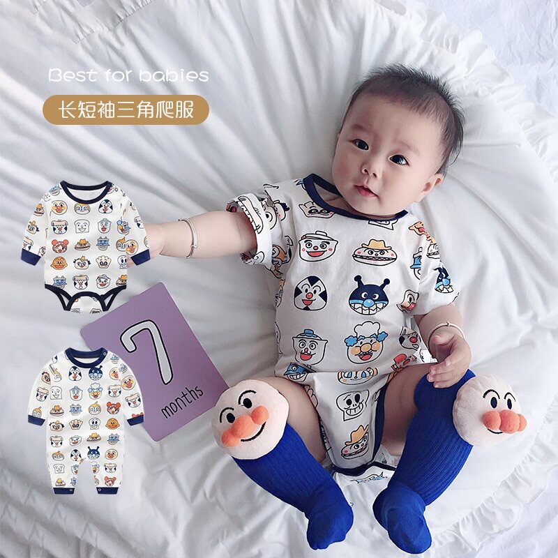 Net red male and female baby climbing clothes newborn triangle romper spring and autumn long-sleeved one-piece summer short-sleeved climbing clothes ins Korean version