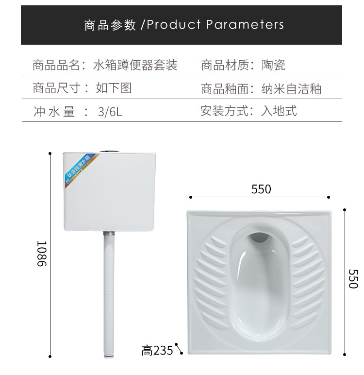 Single ceramic tank ceramic water tank squatting pan with bent front drainage ceramic water tank plus squatting pan with bent rear drain ceramic water tank squatting pan without bending front drainage ceramic water tank squatting pan without bend after bending