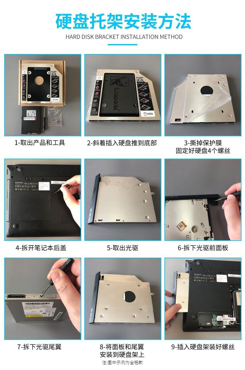All aluminum 9 5mm12 7mm notebook optical drive hard drive bracket 2 5 inch mechanical SSD solid state optical drive bracket