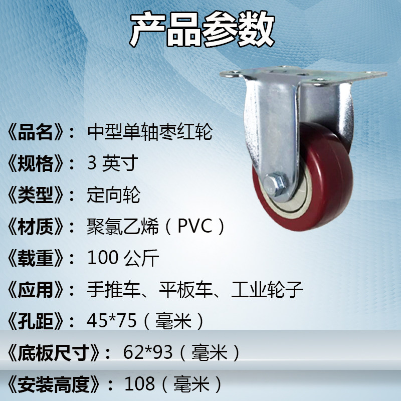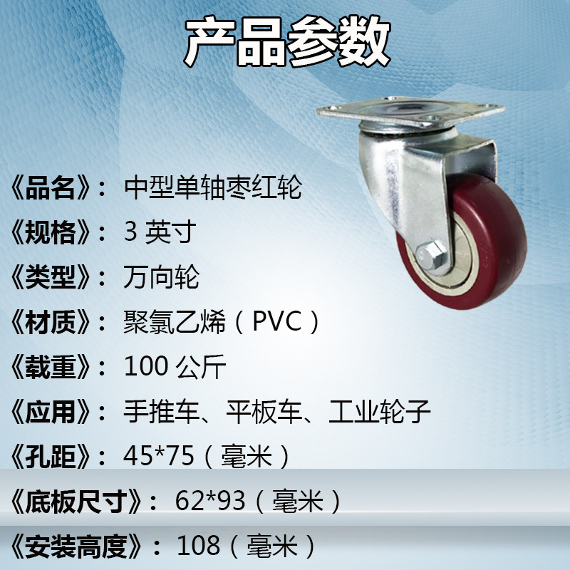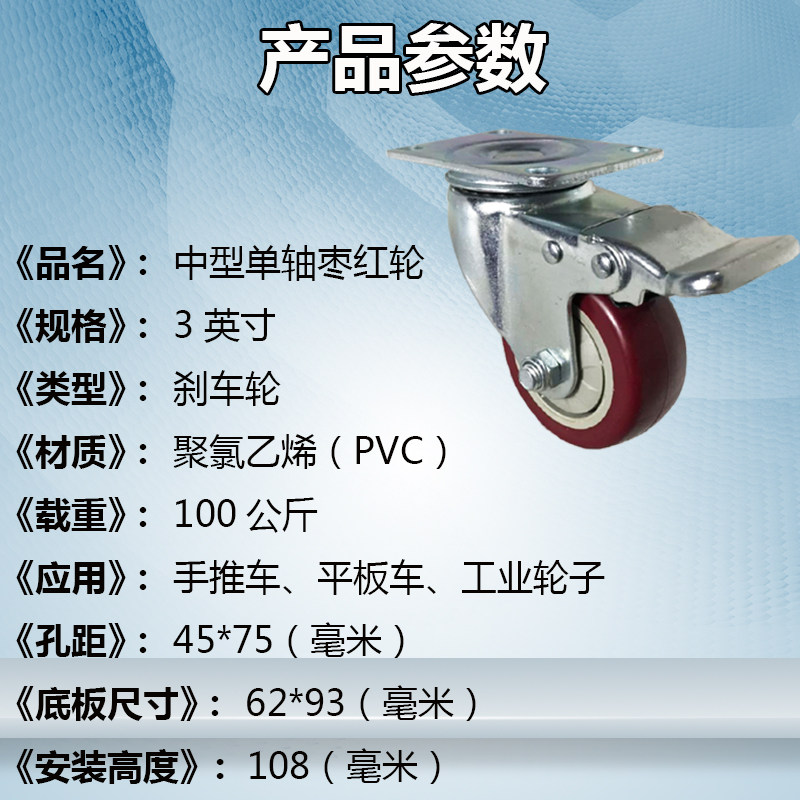3-inch red single-axis single-wheel 3-inch universal wheel 3-inch directional wheel 3-inch universal brake wheel