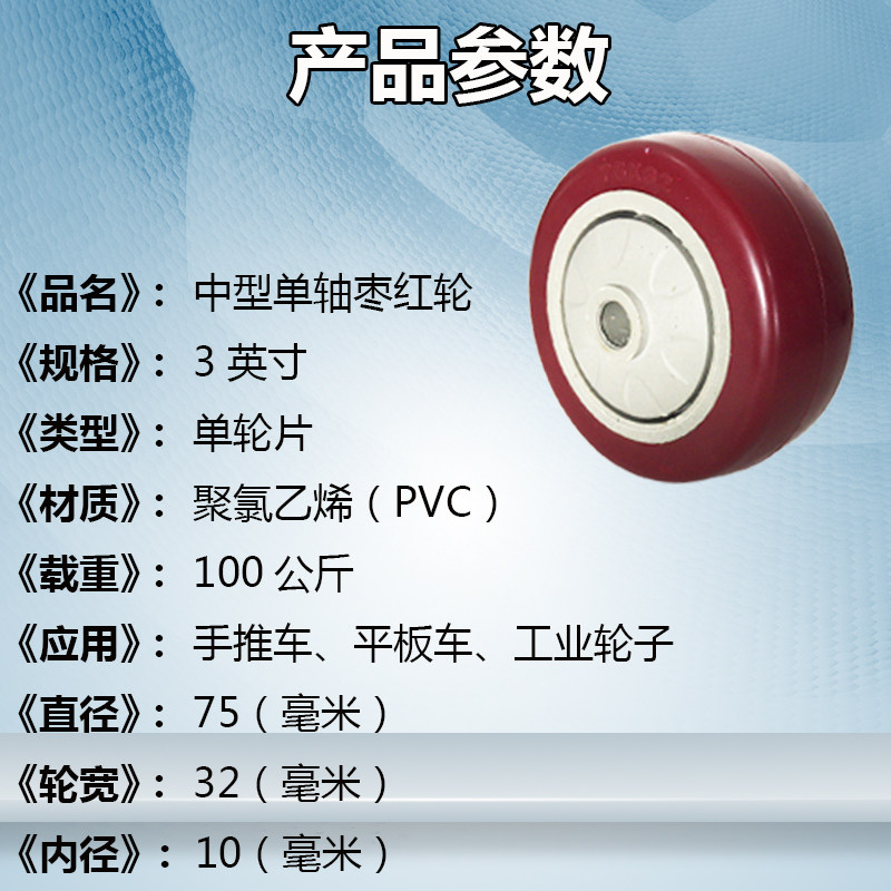 High-quality 3-inch medium-sized jujube wheel 75*32 load-bearing silent universal caster directional wheel brake wheel PVC single wheel