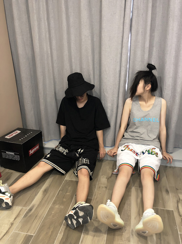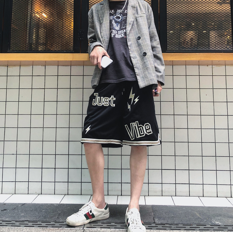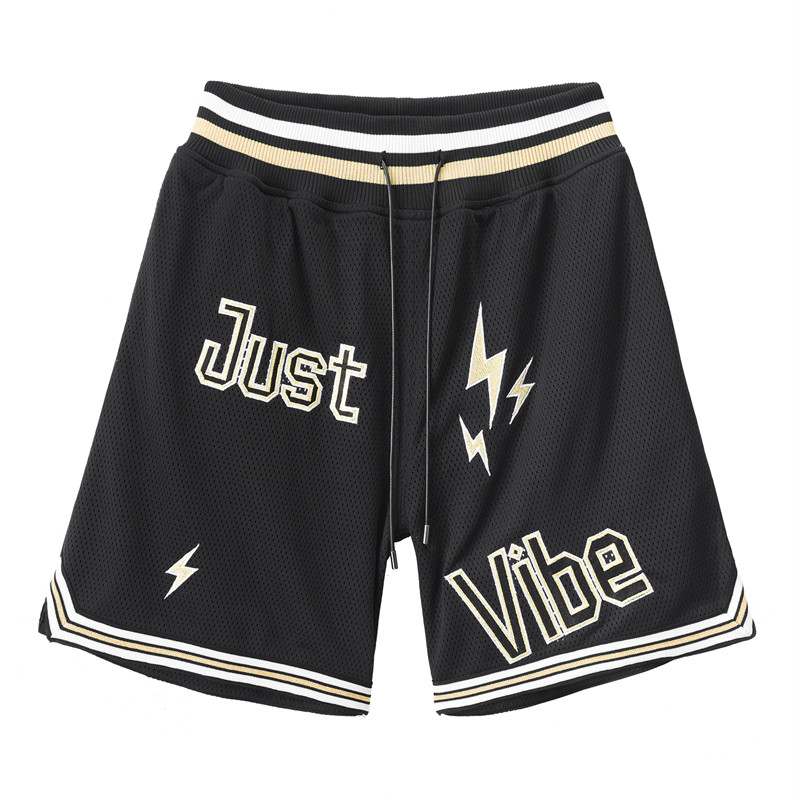 Just Vibe Lightning Embroidered Sports Tide Shorts Men's and Women's Loose Casual Mesh Breathable Basketball Five-point Pants