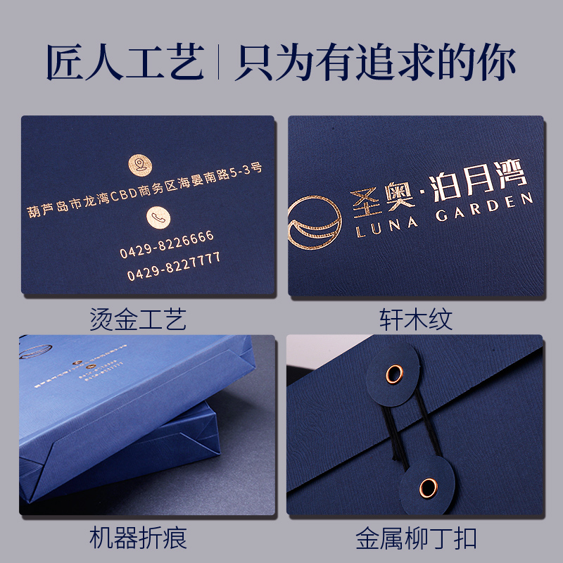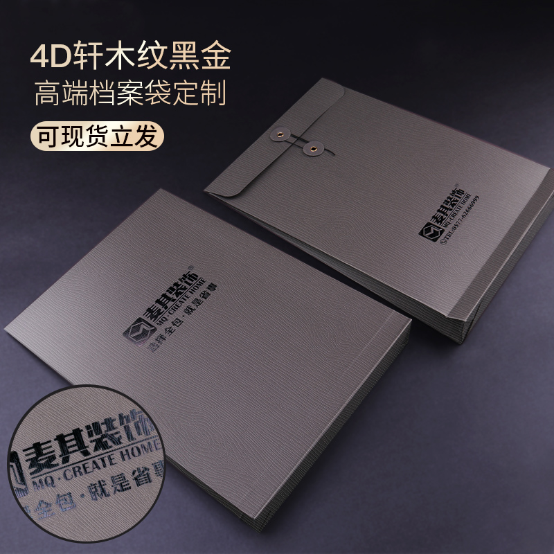 High-end Archive Bags Custom Special Paper Xuan Wood Grain Printed Bronzing Gold Logo Set Making A4 File Bag Information File Bag