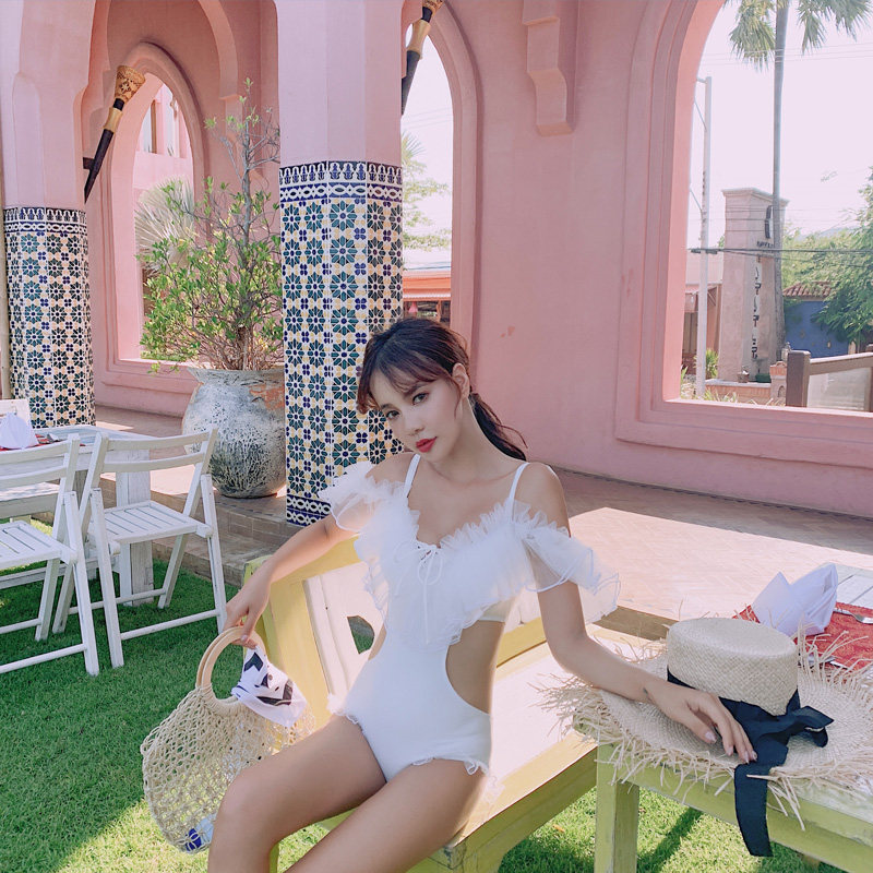 2020 net red even body swimsuit lady white ins wind supersens sexy little breasts to woo the net red fairy van bikini