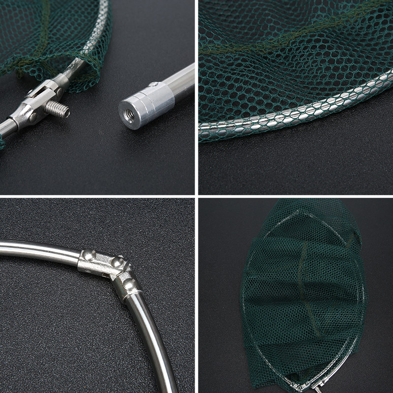 Fishing net bag stainless steel flat head double ring fishing crayfish selling fish field screw fishing net wooden rod handle fish pond supplies
