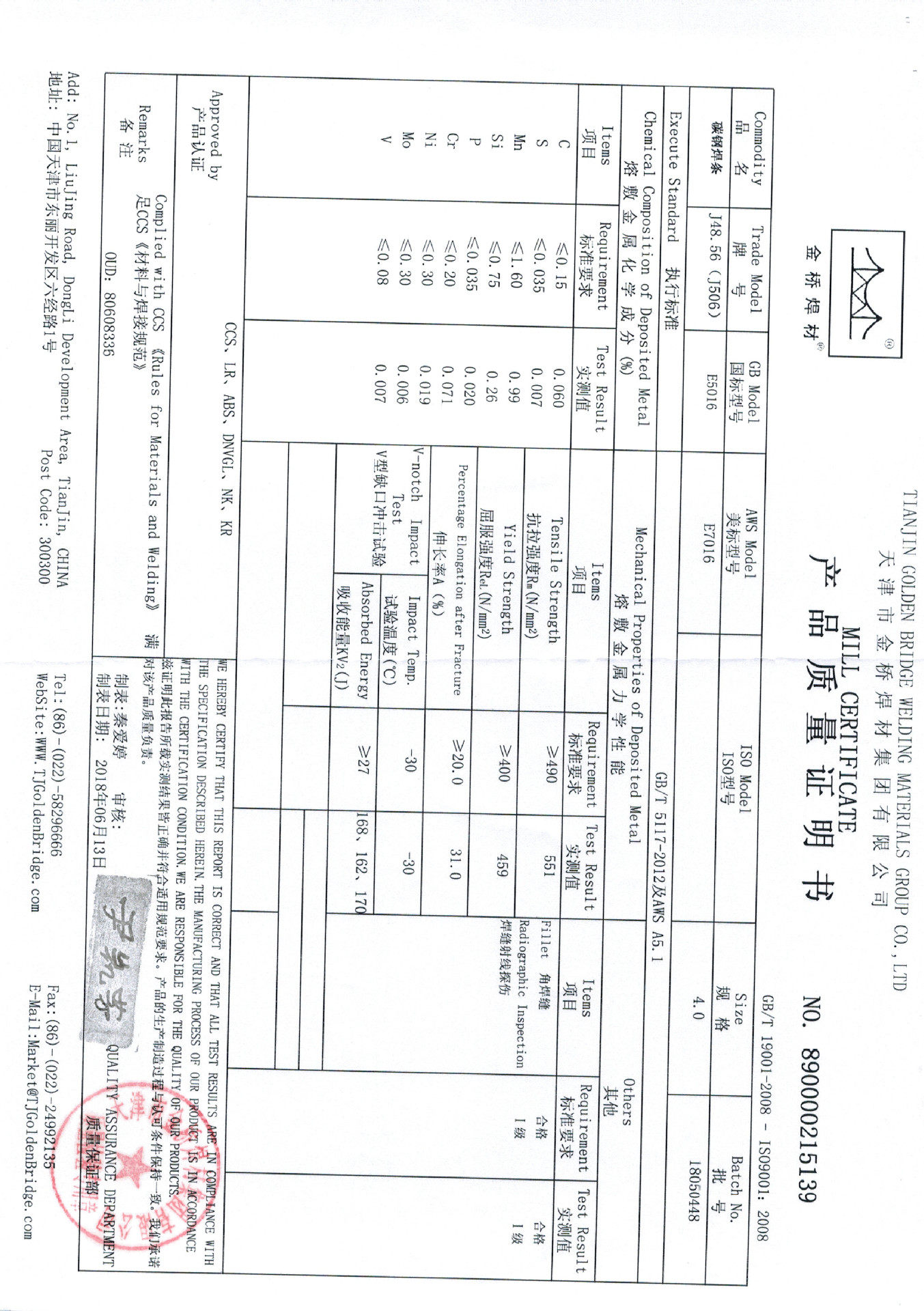 Gold Bridge Welding Rod J506 welding rod Zhejiang Yatai Welding materials Co., Ltd. Real-physical store sales right