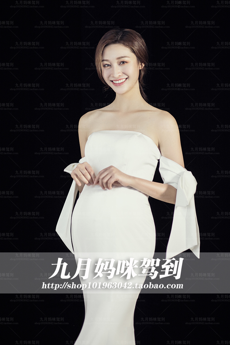 389 Pregnant Woman Photos of Clothing Rental White Bag Body Slim Ocean Dress Gown Tail Trailing Photo Gallery Photography