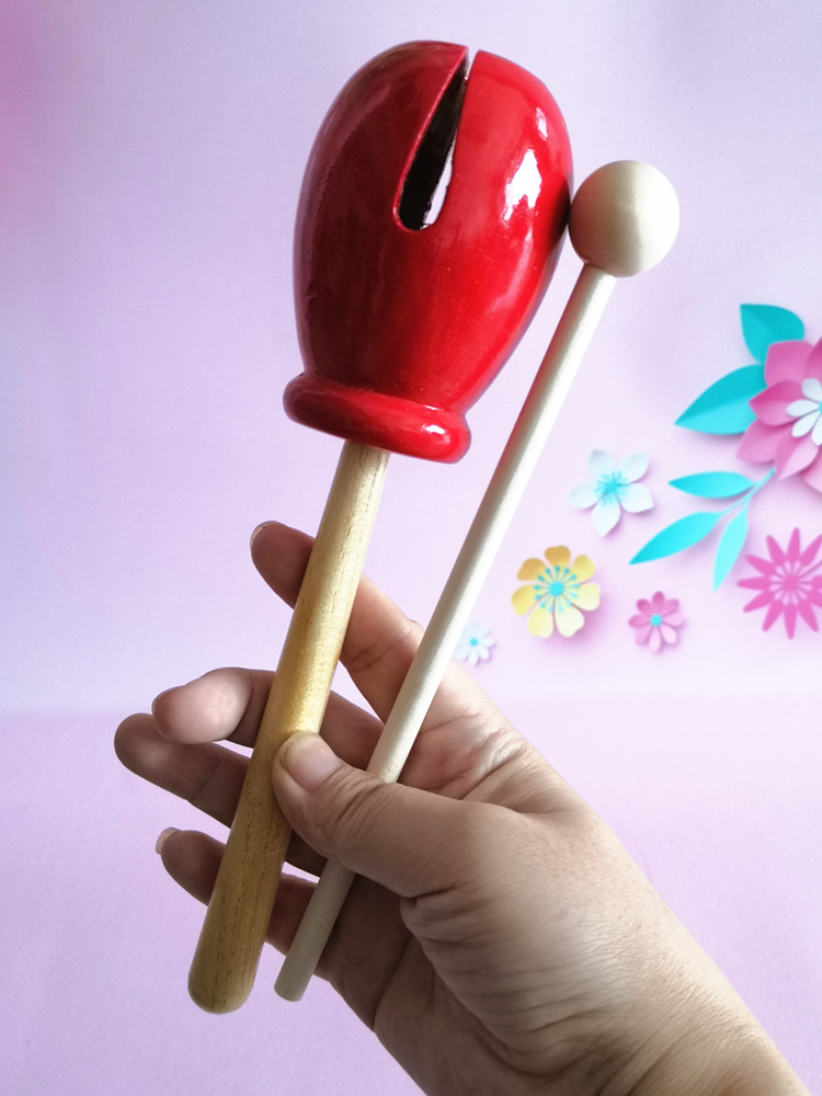Music teaching tool Orf Children's Percussion Instrument Kindergarten Taka Tao Handle Woodfish Red