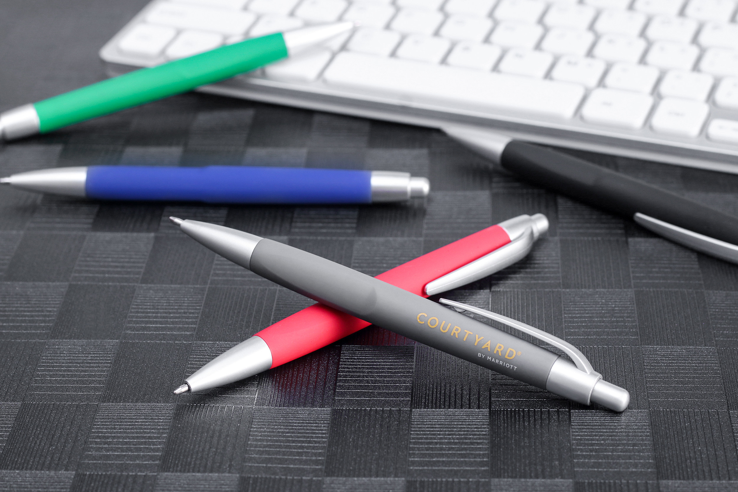 Advertising pen custom logo printing lettering custom ballpoint pen press color spray glue hotel gift oil pen