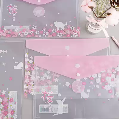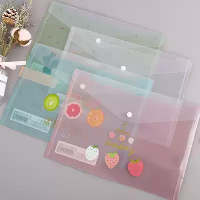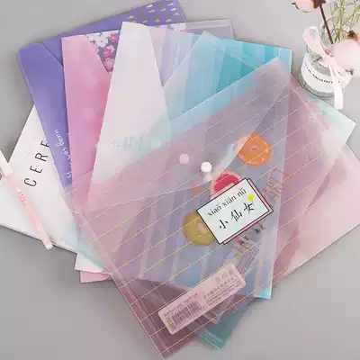 12-pack document bag A4 transparent Korean small fresh and cute snap button Waterproof package for students Test paper data Stationery cartoon paper finishing storage files large-capacity multi-layer classification High school students
