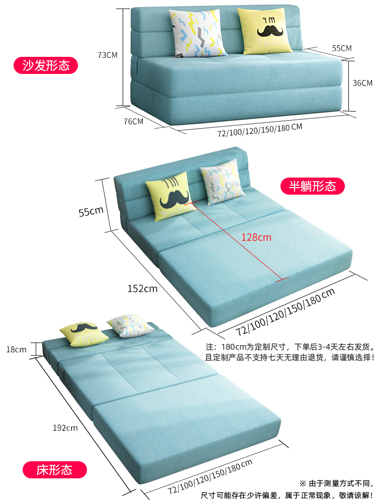 Folding sofa Tatami sofa small apartment dual-use double bedroom removable and washable multi-functional lazy sofa bed