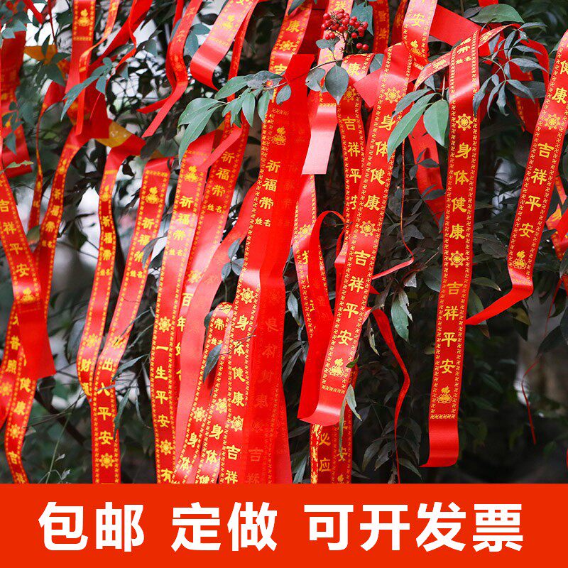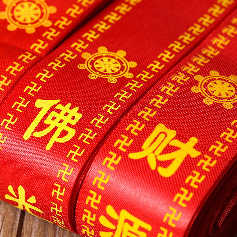 Printed word color band can be set for size Ping An with blessing belt floating red and willing to bring silk satin manufacturer direct sales 100 strips