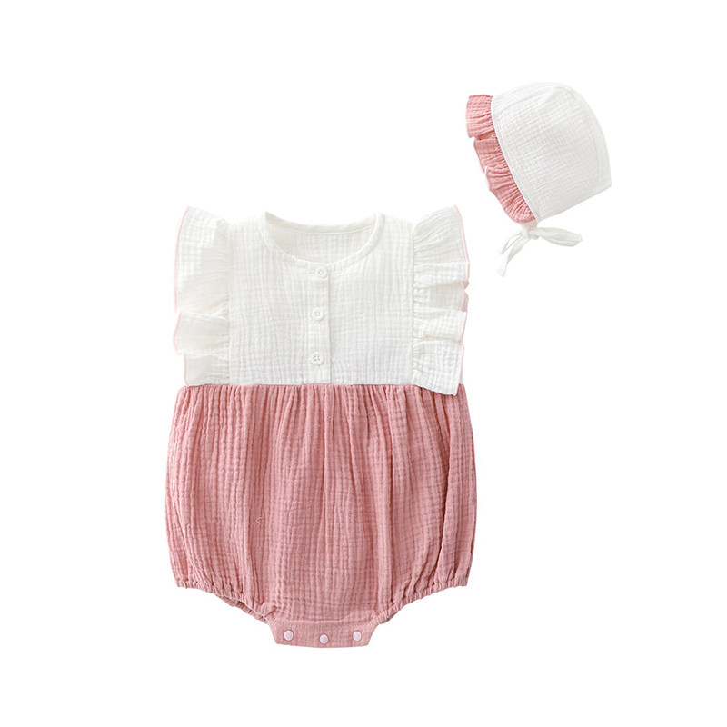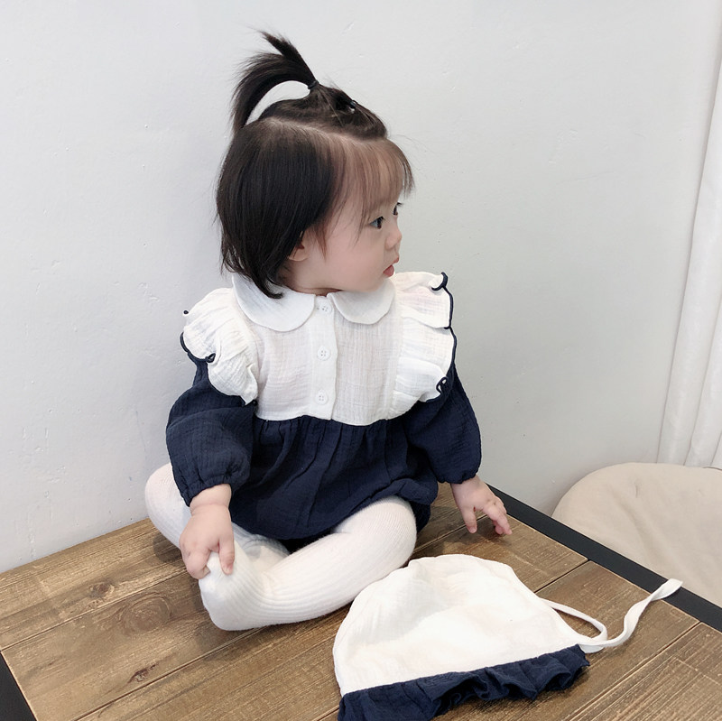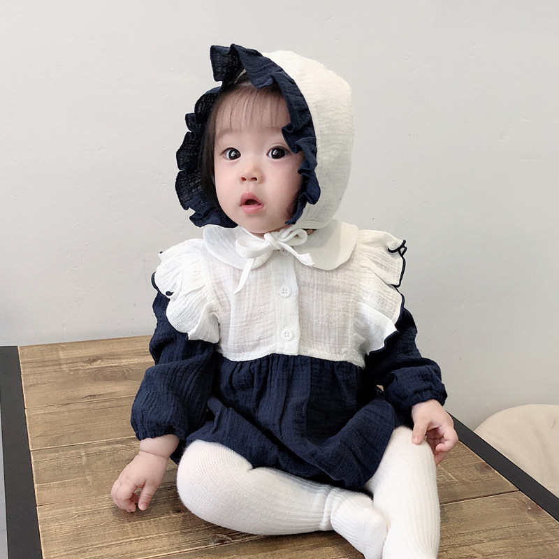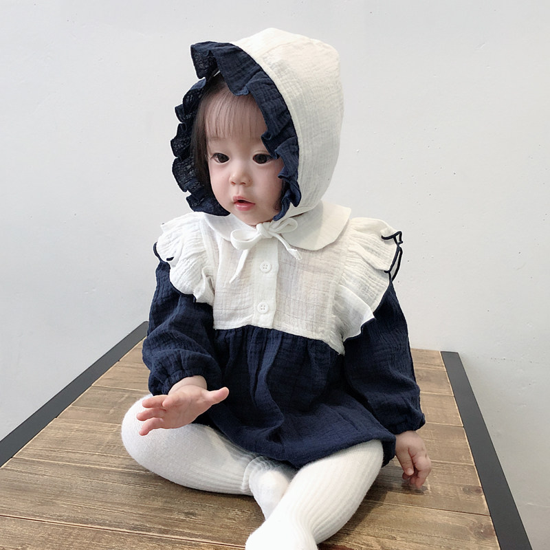 ins2022 spring autumn newborn baby pure cotton baby lotus leaf lace long sleeve farted baby even body suit climbing and sending hat