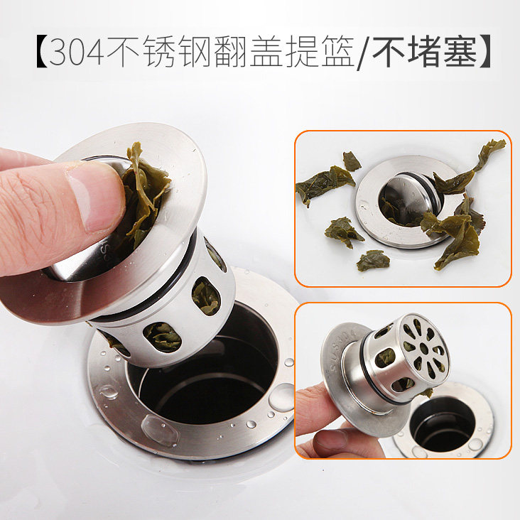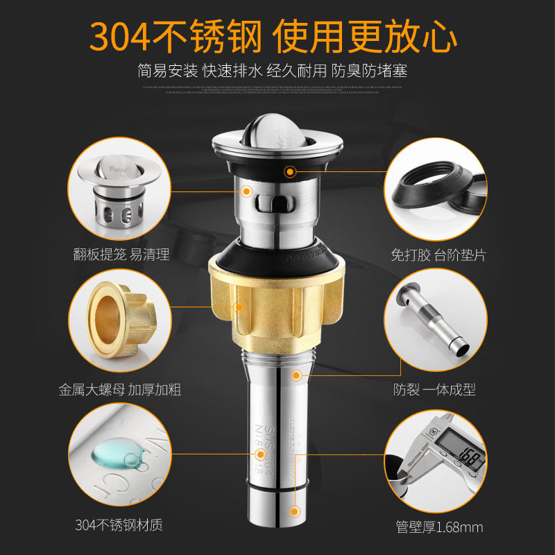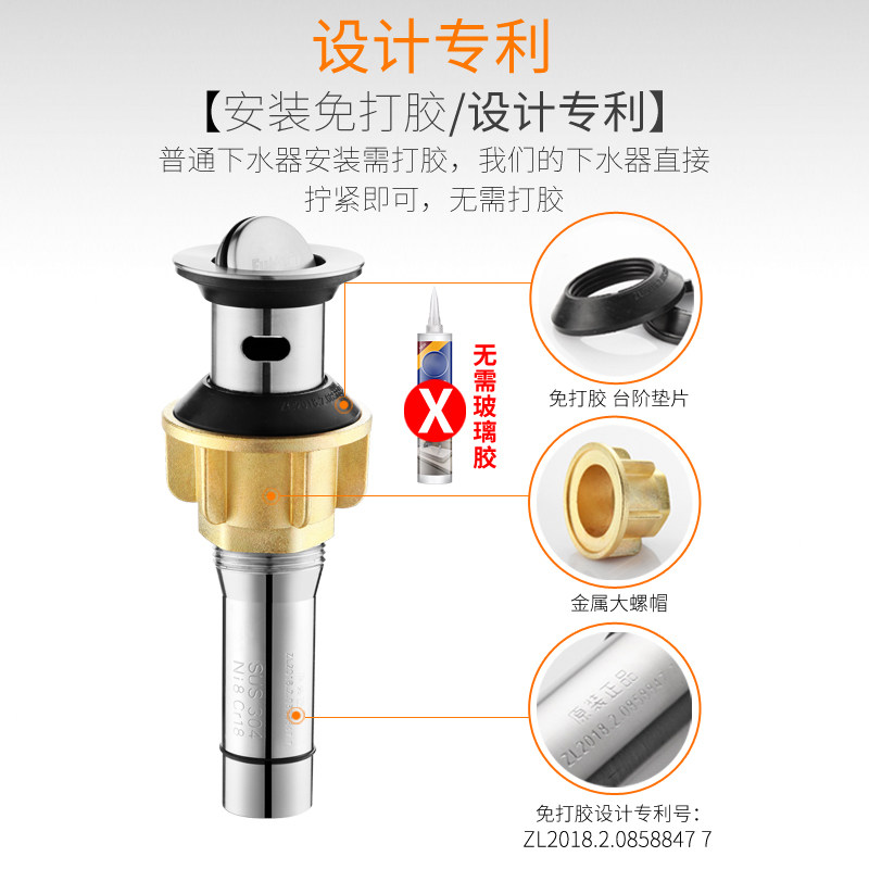 Glue-free basin washbasin 304 stainless steel drainer Deodorant drainpipe drainpipe tap fittings