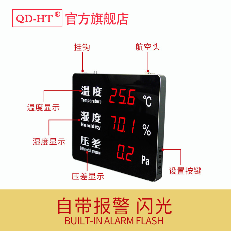 Industrial temperature and humidity meter Warehouse wall-mounted dust-free workshop temperature and humidity differential pressure display Ventilation room differential pressure alarm