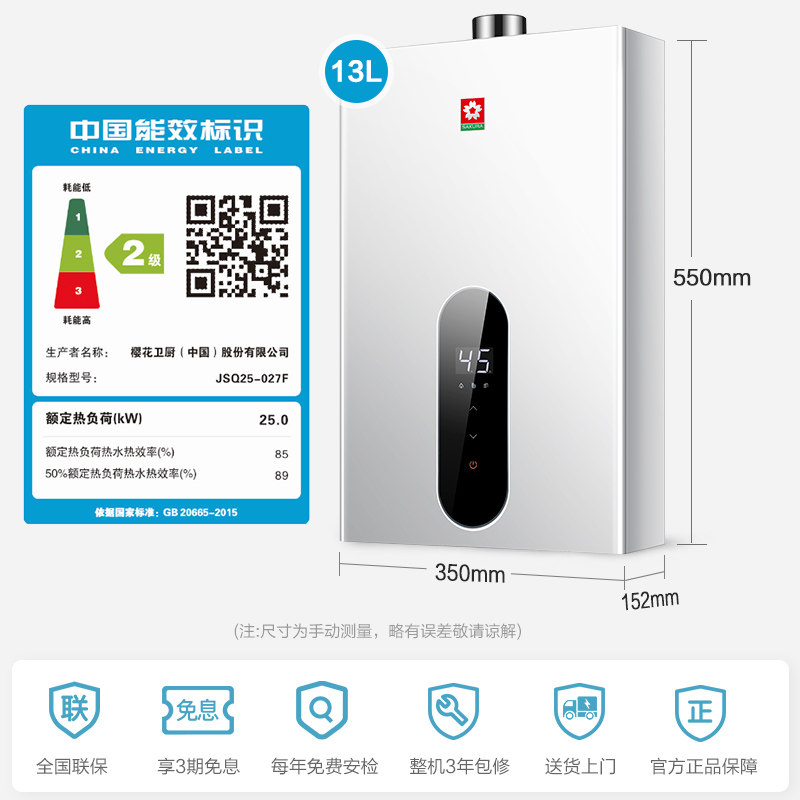 Sakura 13L16 liters 027F intelligent constant temperature gas water heater household natural gas strong row silent official