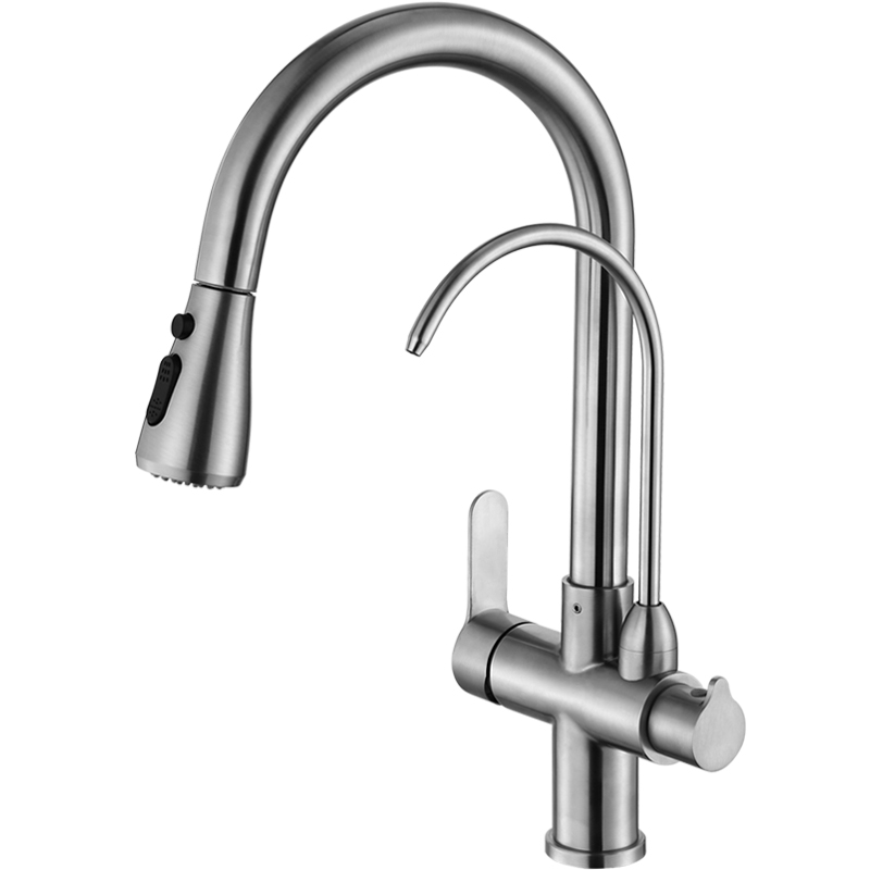 304 stainless steel tap three-in-one kitchen hot and cold washbasin tap stretched pure water machine straight drink