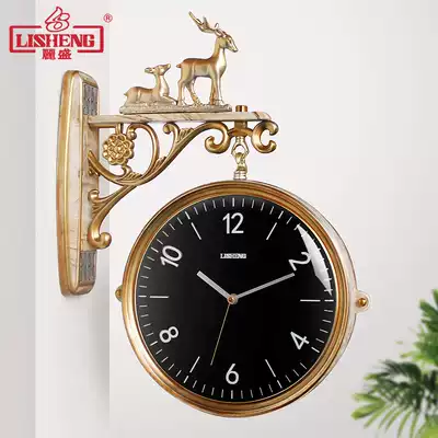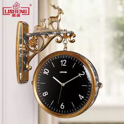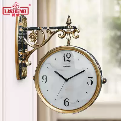 Lisheng European double-sided wall clock living room atmospheric mute American light luxury clock quartz clock creative home wall watch