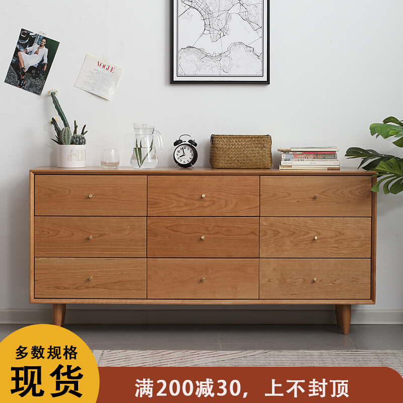 "Cloud Nine Drawers" Nordic Solid Wood Drawer Modern Simple Bedroom Storage Cabinet Cherry Wood Storage Side Cabinet