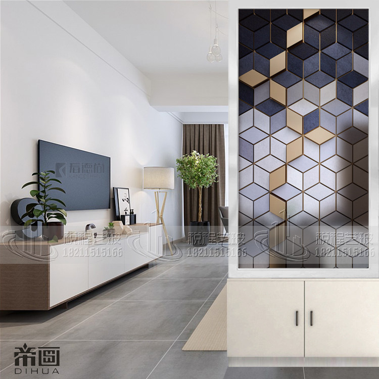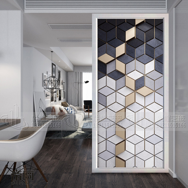 Art glass screen partition porch aisle double-sided laminated toughened transparent frosted light-transmitting shoe cabinet living room aisle