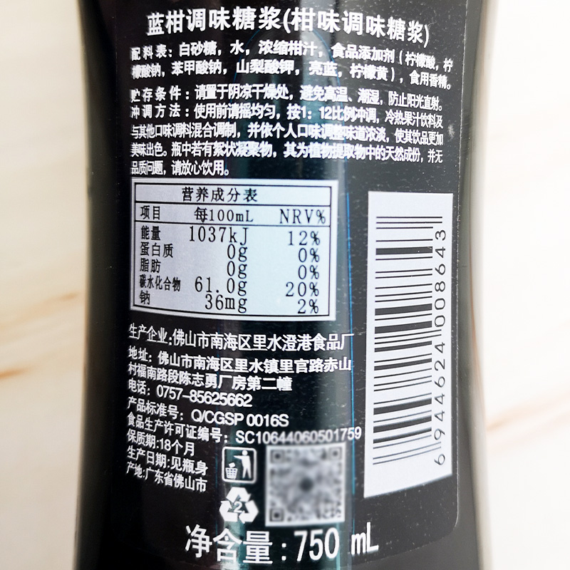 Blue orange flavor syrup 750ml milk tea shop special high-domain blue orange fruit dew cocktail sparkling water commercial honey