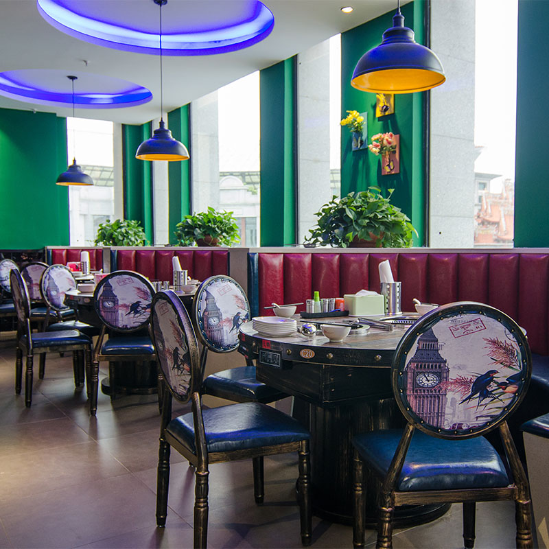 Industrial style theme restaurant tables and chairs fashion barbecue shop restaurant buffet hot pot snack bar wrought iron table and chair combination