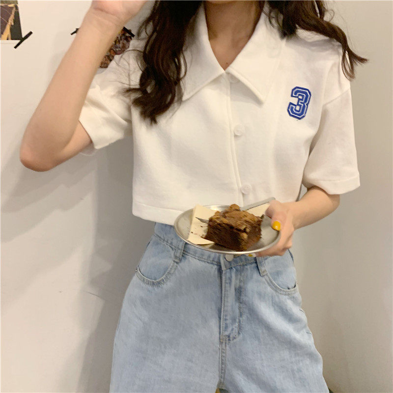 Summer coat 2022 Han Edition new loose and lumbar short - sleeved POLO shirt with white short - sleeved t - shirt