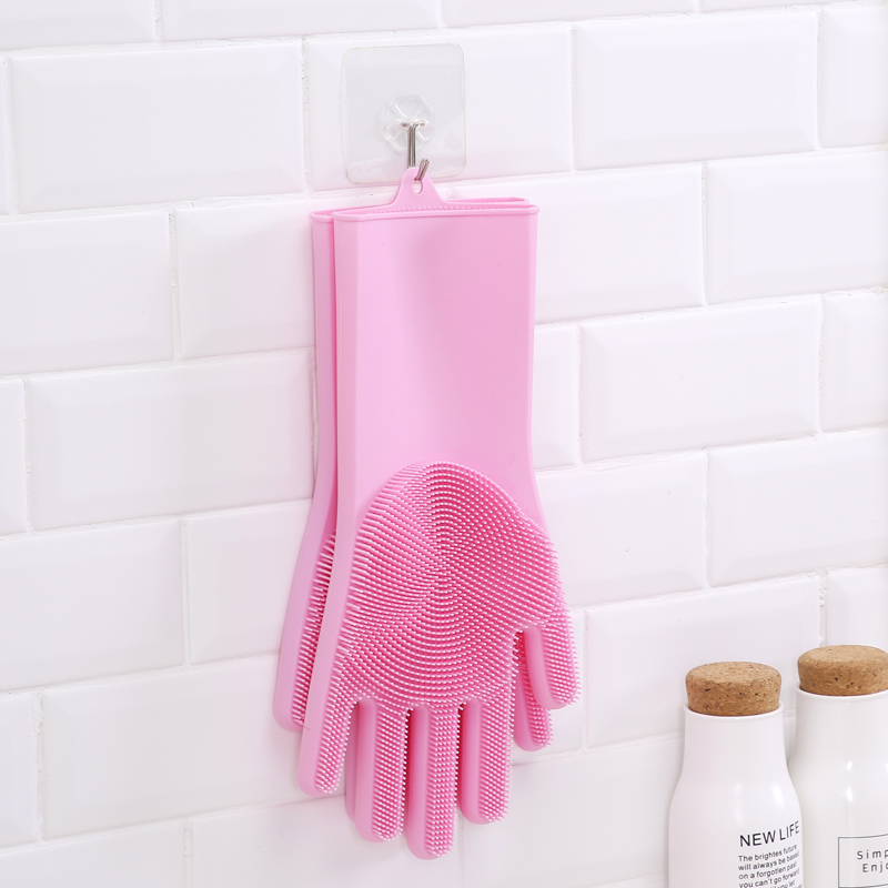 Home Magic Kitchen Wash Clothes Housework Cleaning Silicone Rubber Thin Brush Bowls Gloves Dishwashing Gloves Durable Waterproof