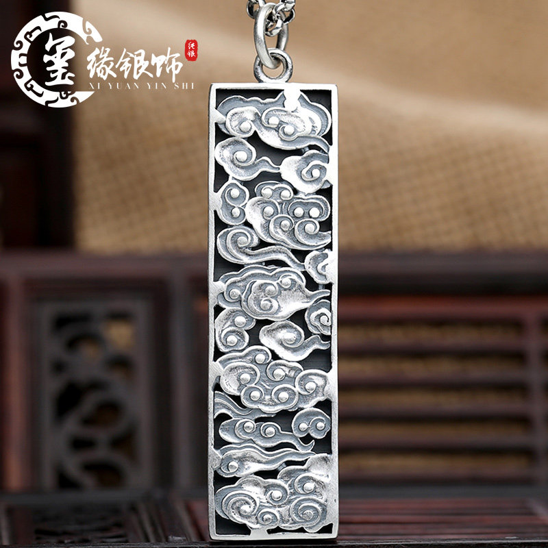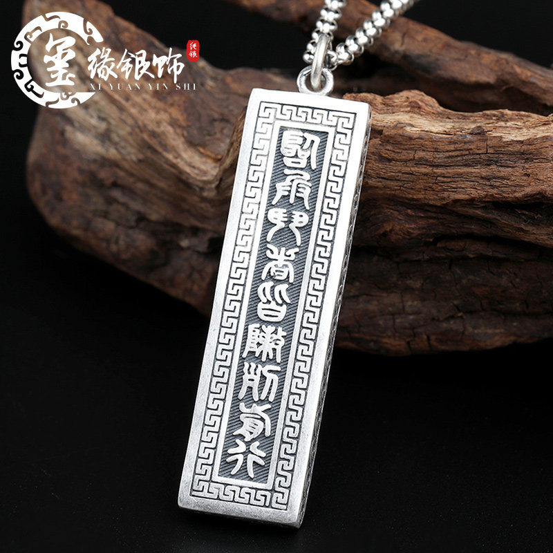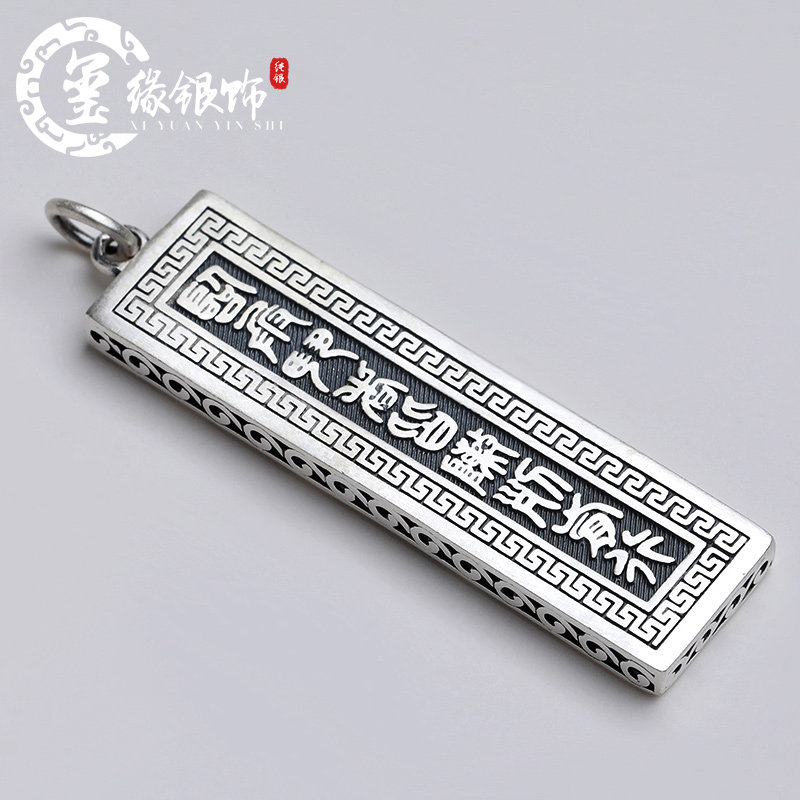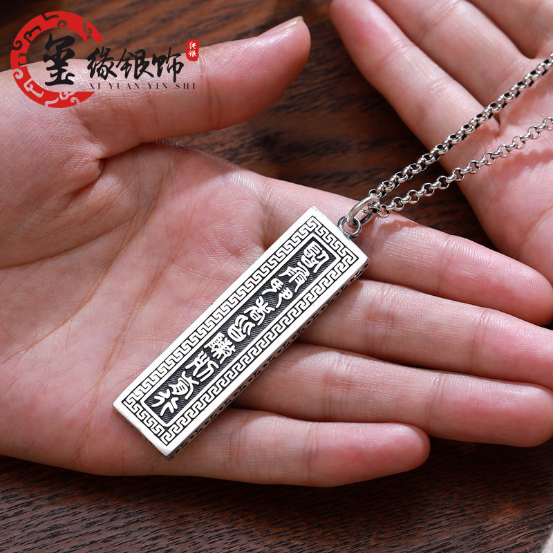 Nine-character mantra sterling silver pendant square card Lining soldiers are all arrayed forward foot silver necklace pendant auspicious cloud pattern silver pendant