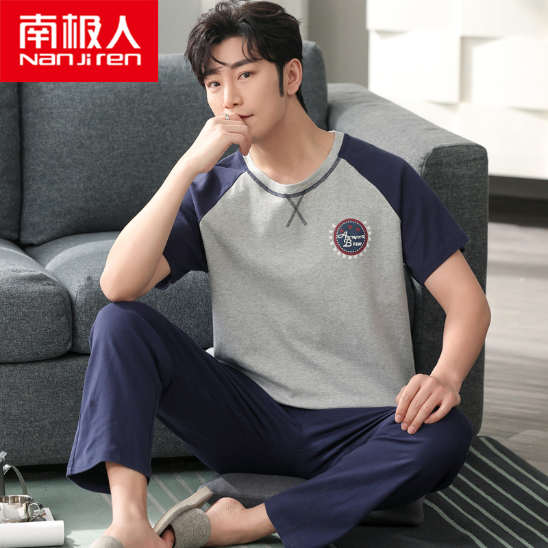Antarctic men's pajamas summer short - sleeved trousers pure cotton cotton cotton household clothing thin for 2023 new suit summer