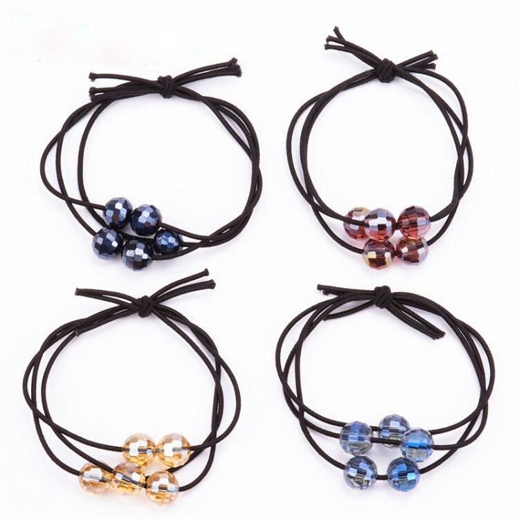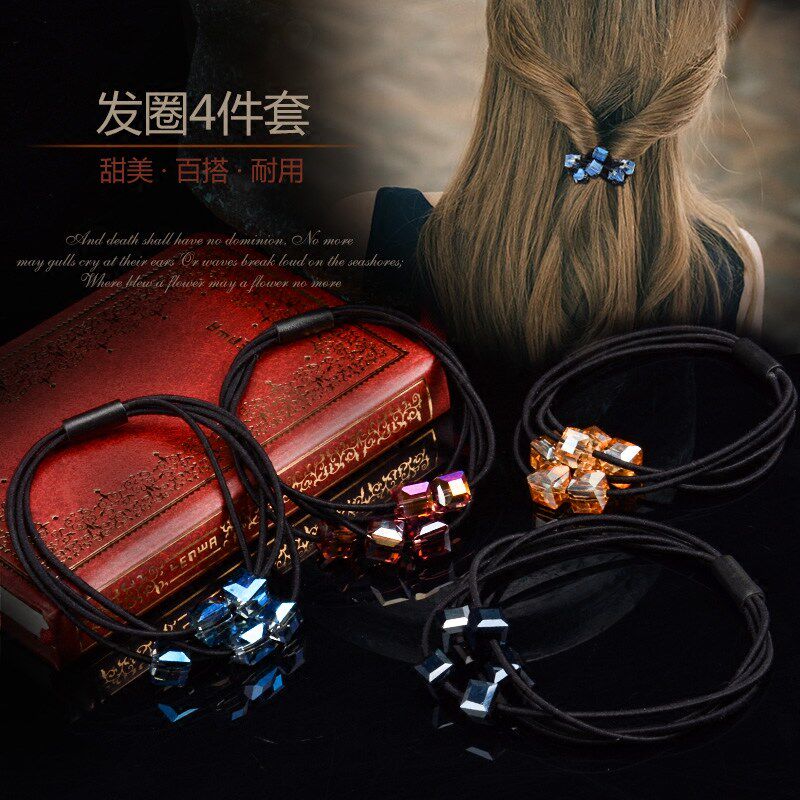 Crystal head rope Korean simple adult ponytail headdress tie hair jewelry Leather band female tie head net red ins hair ring