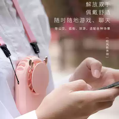 Fashion creative wear neck hanging small fan mini portable rechargeable student handheld USB electric fan