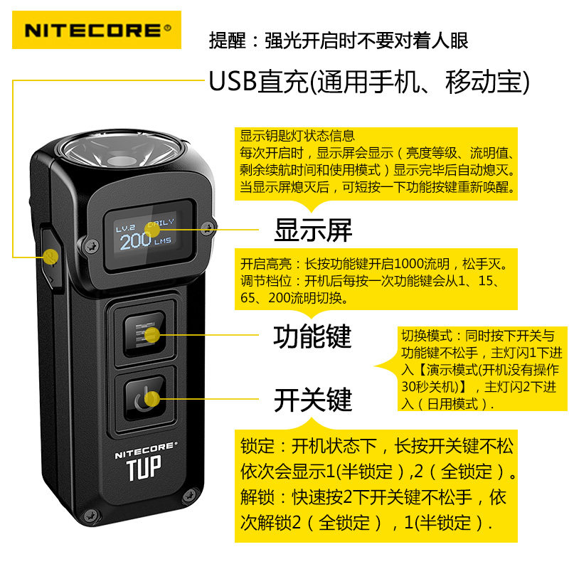 NITECORE Knight Kohl TUP small led USB light charging mini flashlight Strong high light outdoor super bright