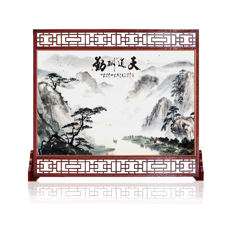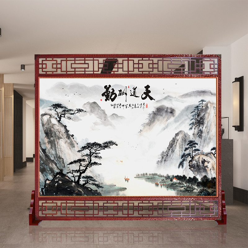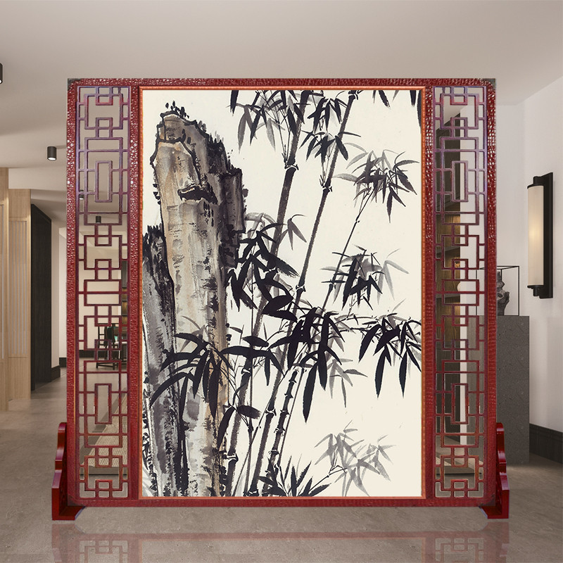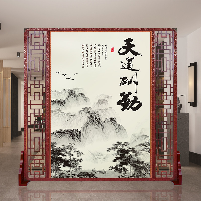 Custom new Chinese solid wood screen partition entrance living room office double-sided leather hollow block Feng Shui seat screen